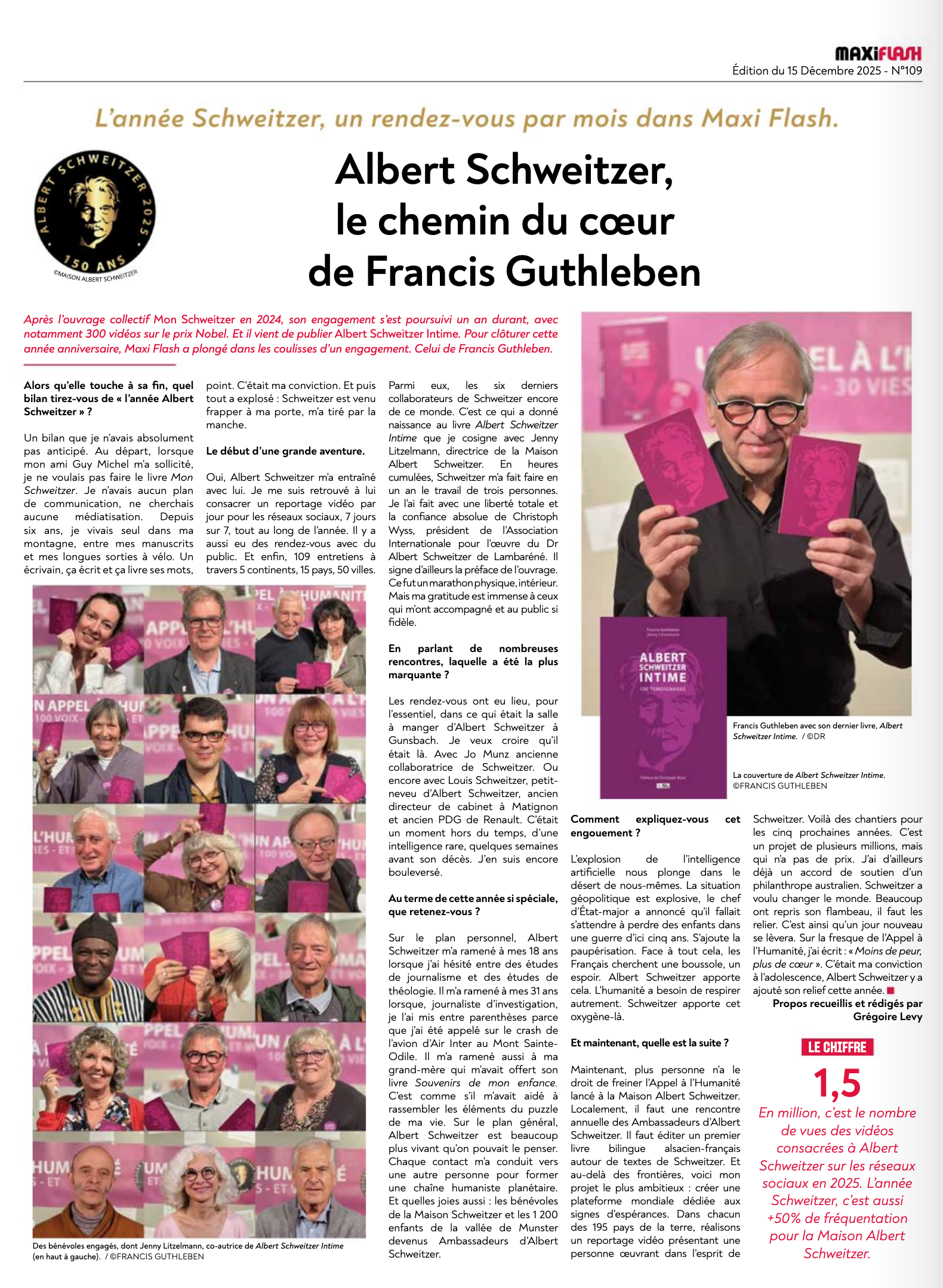 En novembre 2024, l’ouvrage collectif « Mon Schweitzer » a permis de découvrir la perception d’Albert Schweitzer sur sa terre de la Vallée de Munster. Il a réveillé la mémoire collective. Dans la foulée, 300 films que Francis Guthleben a consacré à Albert Schweitzer pour les réseaux sociaux ont été vus plus 1,5 millions de fois. Passer à l’édition des films et des témoignages s’est imposée comme une évidence.